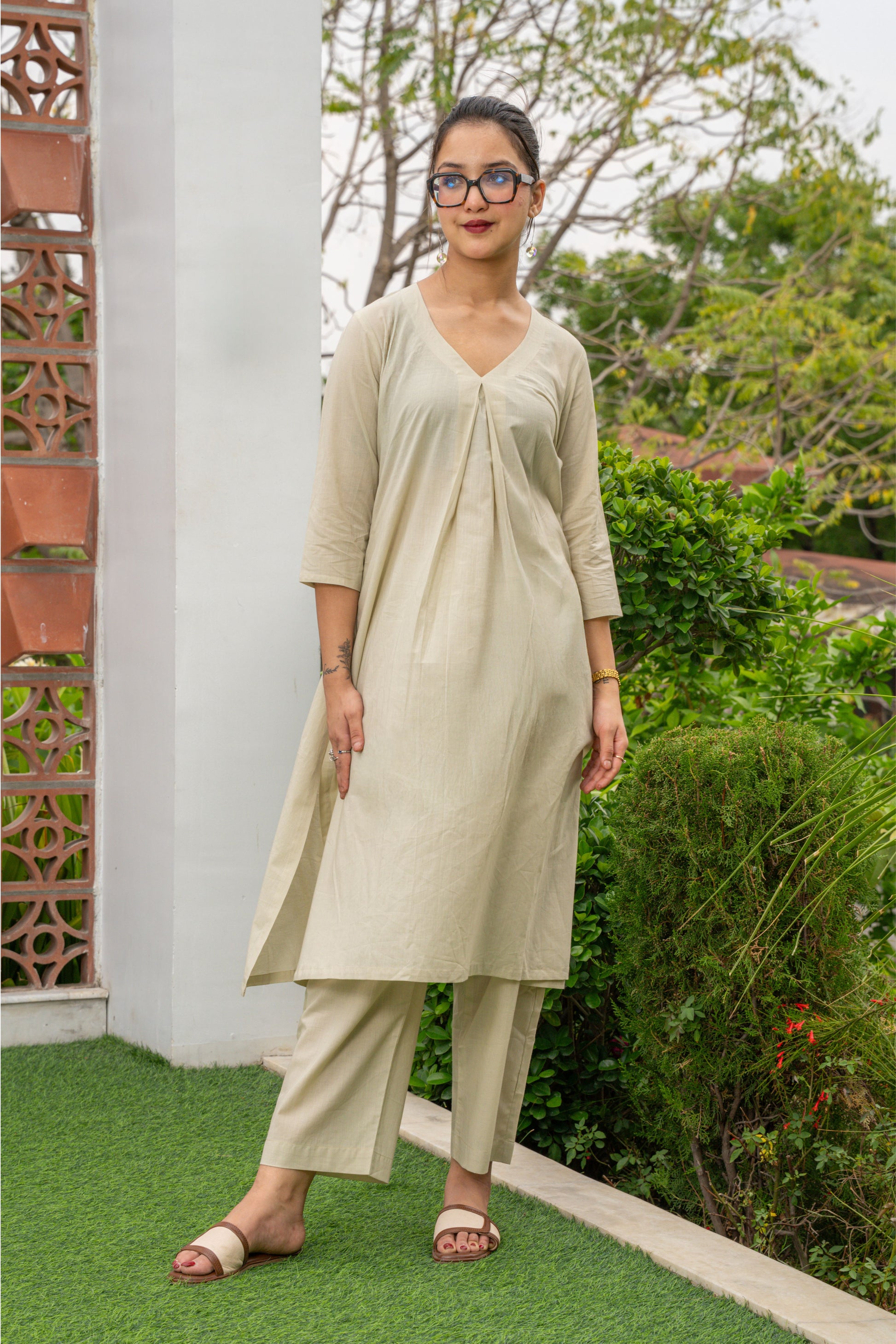Style: Solid co-ord set with center pleat detailing